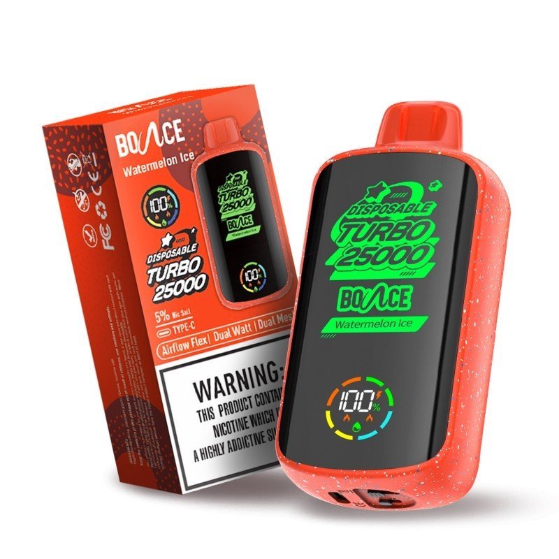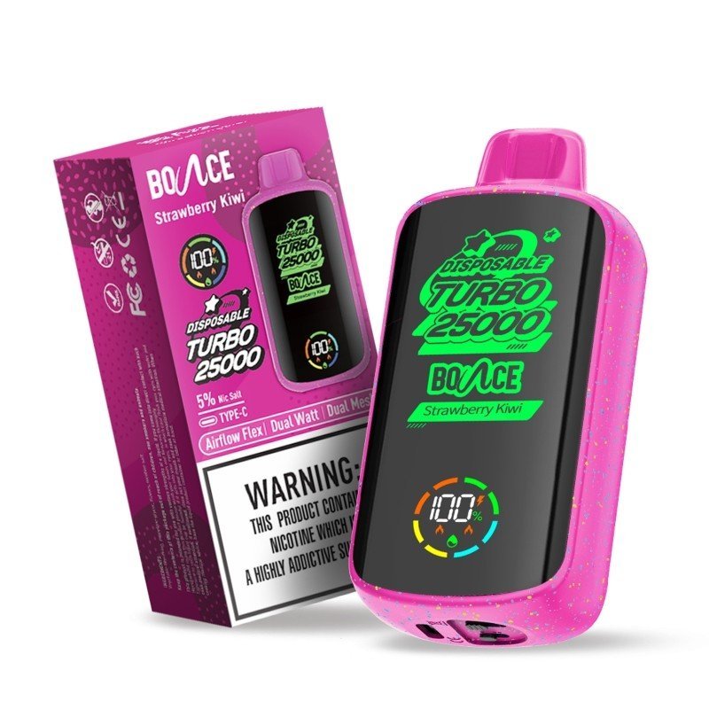 Bounce Turbo 25K Disposable Kit is a smart disposable vape with a screen and it delivers up to 25000 puffs with massive 20ml vape juice and dual mesh coils. Bounce Turbo 25K has a high puff count and good performance in the long term thanks to the large amount of pre-filled e-juice. And the dual mesh coils are the secret behind the excellent flavors and heavy clouds. You can enjoy up to 25000 puffs of rich and distinctive flavors and monitor the status of your vape via the helpful display screen.