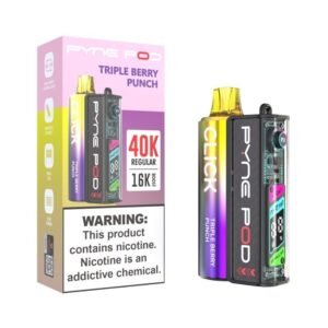 Pyne Pod Click 40K Disposable Vape Starter Kit is a variant of the classic Pyne Pod disposable vape. It runs on a detachable battery and can support daily vaping without frequent recharging. Once a Pyne Pod Click Pod runs out of e-liquid, you can replace the pod and keep the battery. Pyne Pod Click 40K offers various flavor options and allows you to combine batteries of different styles with pods of distinctive flavors. You can enjoy vaping with a simple click if you choose the Pyne Pod Click 40K Vape.